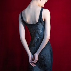 若浓 灵蛇缠绵「误入伊甸园」黑色人丝提花斜裁蛇纹背心长裙