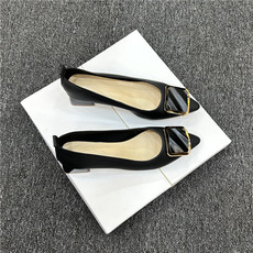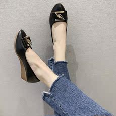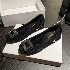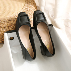 单鞋黑色鞋子女粗跟方扣浅口中跟鞋春秋方头M休闲妈妈防滑工作鞋