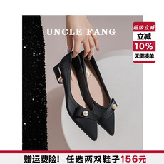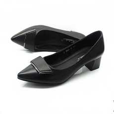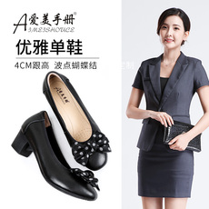 粗跟尖头高跟鞋女一字扣蝴蝶结中跟5cm上班黑色工作职业礼仪鞋子