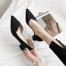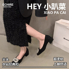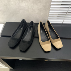 羊翻皮浅口单鞋女粗跟2022秋季新款黑色通勤工作鞋女温柔鞋子中跟