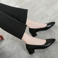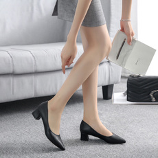 舒适软皮小高跟鞋女职业黑色春款3cm低跟粗跟面试工作5中跟单鞋子