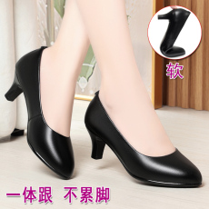 走秀高跟鞋女鞋子黑色工作鞋妈妈跳舞鞋软底软皮女士皮鞋中跟单鞋