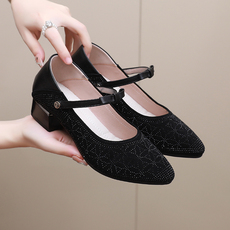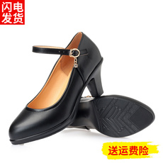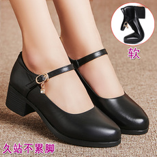 走秀高跟鞋粗跟工作鞋女黑色鞋子妈妈跳舞鞋女鞋软底皮鞋中跟单鞋