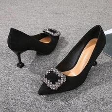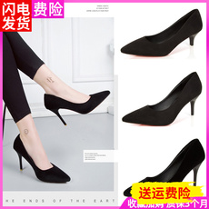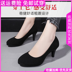 工作鞋女黑色细跟高跟鞋秋冬新款舒适中跟单鞋职业上班女鞋子