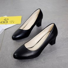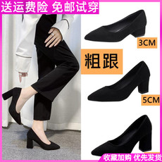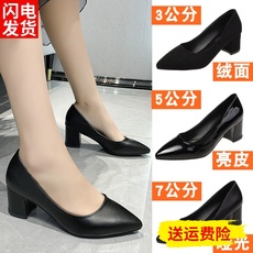 粗跟工作鞋女职业黑色软底舒适中跟女士上班面试鞋子圆头3-5厘米