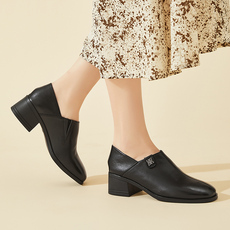 2025新款秋季真皮单鞋女粗跟中跟黑色小皮鞋工作鞋正品洋气女鞋子