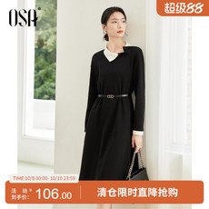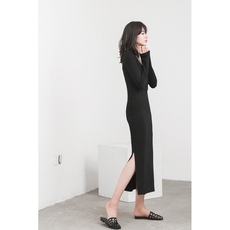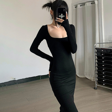 欧货女装秋冬新款黑色显瘦打底裙修身内搭气质高级感针织连衣裙女