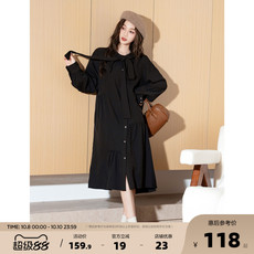 陆与山屿春秋黑色百搭裙子花朵衬衫连衣裙设计感小众宽松休闲长裙