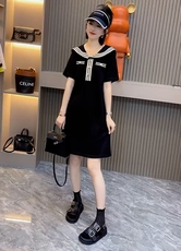 2024年夏季新款连衣裙春款女宽松短袖裙子长款黑色大码T恤裙懒人