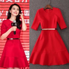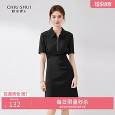 立领显瘦一步裙小黑色连衣裙赫本风红裙年会礼服2025新款女春秋装