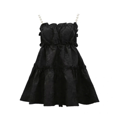 DPLAY2025秋季轻奢名媛黑色连衣裙女重工针织小黑裙短款裙子长袖