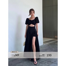 2025年新款夏季小黑裙法式收腰设计感黑色连衣裙子女高级感茶歇裙