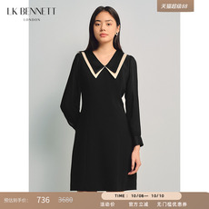 LILY法式通勤设计感修身圆领无袖收腰黑色连衣裙年新品