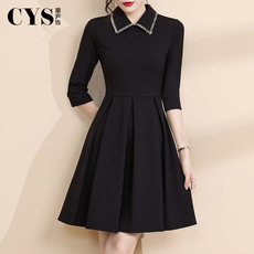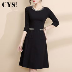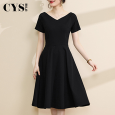 秋水伊人小香风连衣裙2025夏季新款女装简约收腰赫本风黑色A字裙