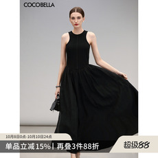 乔拉【戛纳之夜】秋冬新款黑色针织连衣裙女2024年半高领无袖长裙