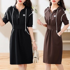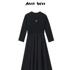 黑色长袖连衣裙卫衣裙女春秋季2025年显瘦中长款t恤裙通勤小个子