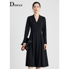 DPLAY【惠品】秋装季新品通勤ol经典黑色V领修身螺纹针织连衣裙