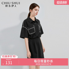 SUSSI/古色夏商场同款黑色印花显瘦X型连衣裙女