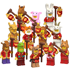 中国积木十二生肖鼠牛龙蛇卡通动物第三方KDL854拼插积木人仔玩具