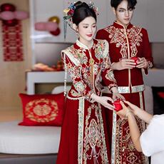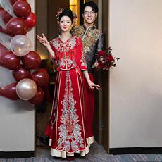 秀禾服龙凤褂中式婚礼新娘新郎大码刺绣奢华复古结婚敬酒服出租
