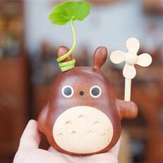 创意实木小龙猫风车桌面摆件车载香薰玩偶可爱装饰花插礼物
