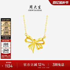 周大生黄18K金项链爆闪碎金小方糖爱心吊坠锁骨链生日礼物送女友