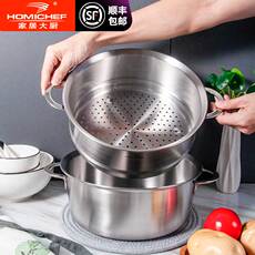小蒸锅不锈钢三层加厚家用汤锅带蒸笼双多2层电磁炉瓦斯灶专用