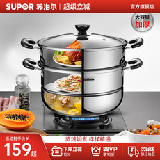 苏泊尔蒸锅304不锈钢家用2/3层蒸煮两用锅具24/26/28/30/32/34CM