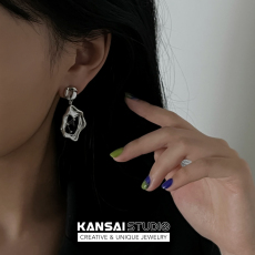 KANSAI冷淡风黑色锆石液态耳环2022年新款潮设计感高级耳钉耳饰夏