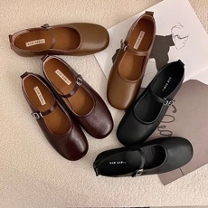 linlin2022韩国新款一字带方头玛丽珍单鞋超软浅口平底女鞋百搭