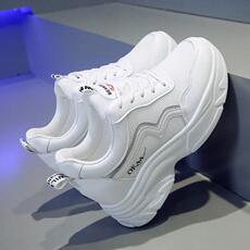 内增高老爹鞋女百搭春秋季皮面小白鞋2022新款松糕厚底运动鞋子女