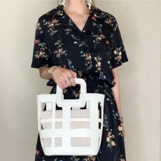 Lonslan BAG 2022新款镂空圆帆布小众设计通勤单肩斜挎肩带手提包