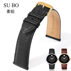 适配Movado摩凡陀博物馆蜥蜴纹真皮手表带 男女黑色皮表链15/21mm