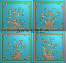 新款梅兰竹菊精雕图灰度浮雕图精品四季花地柜电视柜门板244x235