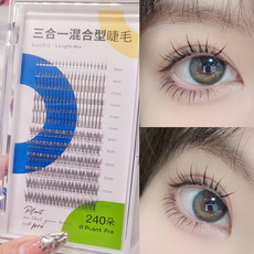 240朵三合一大容量假睫毛鱼尾A字上下睫毛混合素颜自然卷翘仿真单