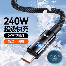 240W超级快充数据线Type-C10A适用华为p60pro荣耀300magic6/7oppo小米魅族通用带灯充电线车载加粗2米长