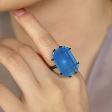 轻奢日常款 百搭潮流时尚人工圣玛利亚海蓝色水滴戒指耳钉.银镀金