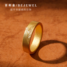 老庙黄金龙凤足金对戒可调节情侣款戒指套戒结婚送礼男女官方正品