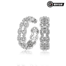 WIC S925银莫桑石戒指法式白蕾丝满钻镂空可调节欧美镶嵌戒指