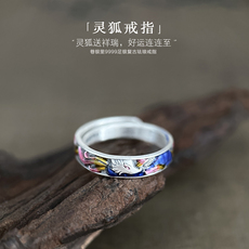 巷银里[灵狐]足银999.9珐琅复古纯银戒指女新中式九尾狐狸食指环