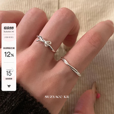 suzyacc kr简约百搭高级感纯银蝴蝶结纤细戒指小众设计食指戒指环