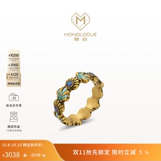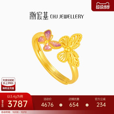 潮宏基花韵足金戒指古法黄金戒圈九紫离火蝴蝶珐琅计价生日礼物