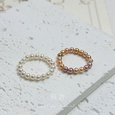 高性价比极光2mm珍珠戒指小珠诸暨淡水珍珠戒指女满圈珍珠排戒DIY