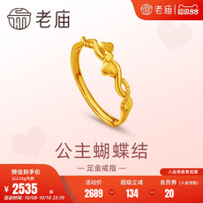 老庙黄金足金999爱心蝴蝶结戒指5G复古在逃公主送女友