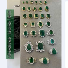 新款奢华 祖母绿美甲宫廷风高贵宝石锆石布契拉提戒指指甲饰品