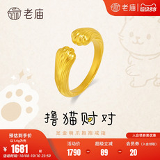 老庙黄金足金萌爪抱抱戒指5D招财猫哈基咪可爱猫爪金开口笑女