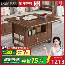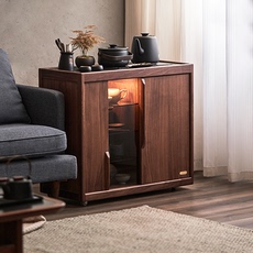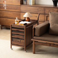 新中式茶水柜实木可移动沙发边柜客厅黑胡桃木展示柜茶桌煮茶茶台