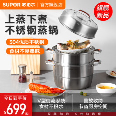 苏泊尔蒸锅家用高端304不锈钢加厚3层蒸煮炖蒸鱼馒头锅燃气灶专用
