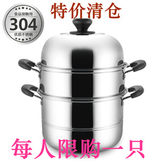 -304不锈钢蒸锅汤锅两用双层3层多层加厚蒸馒头家用三层大容-