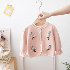 2025新款女宝宝秋装1-2-3岁女童长袖针织衫毛衣开衫卡通外套衣服5